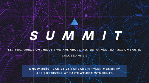 It's that time of year! DNow 2026 is coming up on January 23 to 25. Get your students signed up for this awesome weekend full of fun, worship, and fellowship with other students! It'll be an unforgettable time. You can either pay online or in-person. The cost is $60.